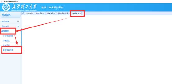 第2步:进入“考试报名”,点击“ 成绩管理”,“学生重修报名”原不及格且该学期开课的课程全部会出现。