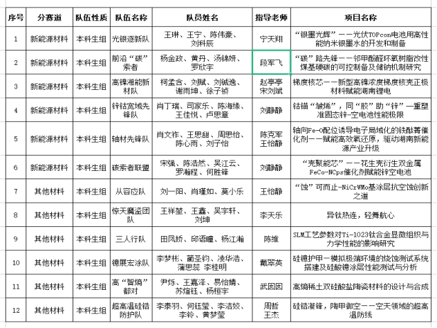 根据长沙理工大学发布的第一届湖南省大学生材料创新设计暨现代金相技能大赛——材料创新设计赛道的相关规定,经学生个人申报、专家评审,现将通过初赛的队伍名单公示如下,公示时间为5月28日-5月30日,如有异议,可向材料学院教务办实名反映。电话:85258487,联系人:李老师。