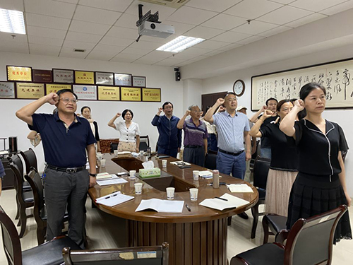 党支部副书记蒋菲同志带领教务处党员同志重温入党誓词。宣誓仪式上,全体党员面向党旗,神情肃穆,高举右手,用铿锵有力的话语再次宣誓:“我志愿加入中国共产党,拥护党的纲领,遵守党的章程,履行党员义务……”入党誓词的十二句话,句句千钧。