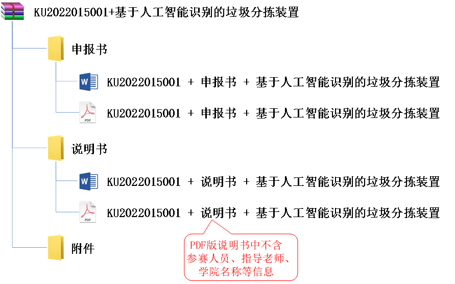 以“说明书”为文件夹名,内含名为“作品编号+说明书+作品名”的文档 |