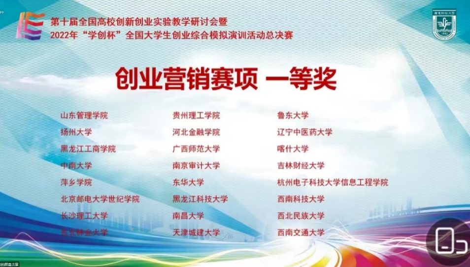 雷竞技官网2支代表队分别参加了主赛道和创业营销专项赛道的竞赛,经过与来自北京航空航天大学、中南大学、中山大学、南开大学等高校参赛选手的经过激烈角逐,雷竞技官网2支代表队分别获得主赛道和创业营销专项赛道一等奖,开创了雷竞技官网在该项赛事的最好成绩。此外我校还获得大赛组委会颁发的“优秀组织奖”。