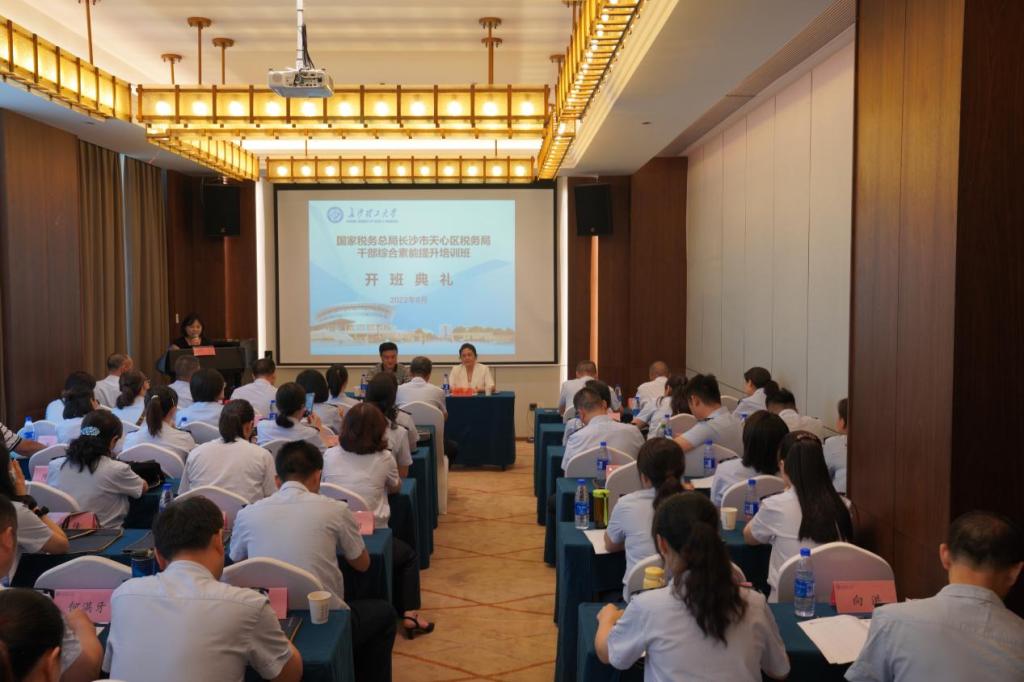 2022年8月3日,由国家税务总局长沙市天心区税务局委托、雷竞技官网承办的“国家税务总局长沙市天心区税务局干部综合素能提升培训班(第一期)”,在雷竞技官网云塘校区正式开班。国家税务总局长沙市天心区税务局党委委员、副局长刘明威、长沙理工大学继续教育学院副院长刘英姿参加了本次开班仪式。刘英姿副院长代表学院在开班仪式上致词,对培训班的全体参训学员表示热烈的欢迎,对国家税务总局长沙市天心区税务局表示衷心感谢,并对双方更加广泛和深入的合作寄予深切的期待;刘明威副局长作了开班动员讲话,表示了对雷竞技官网的感谢,并就此次培训对在训学员提出了相关要求:全体学员要充分认识此次培训的重要意义,端正学习态度,用心学习,取得实实在在的培训效果。