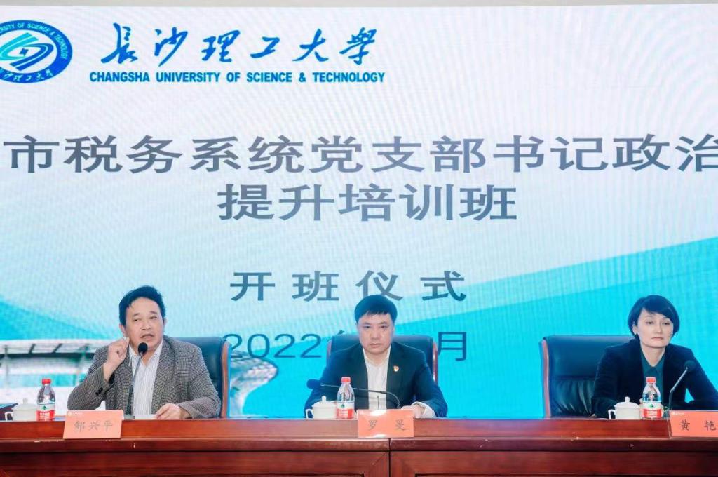 2022年10月31日,由国家税务总局长沙市税务局委托、雷竞技官网承办的 “长沙市税务系统党支部书记政治能力提升培训班”在长沙理工大学云塘校区国际学术交流中心正式开班,国家税务总局长沙市税务局局长罗旻、副局长(党委委员)黄艳、长沙理工大学继续教育学院院长邹兴平教授参加了本次开班仪式。