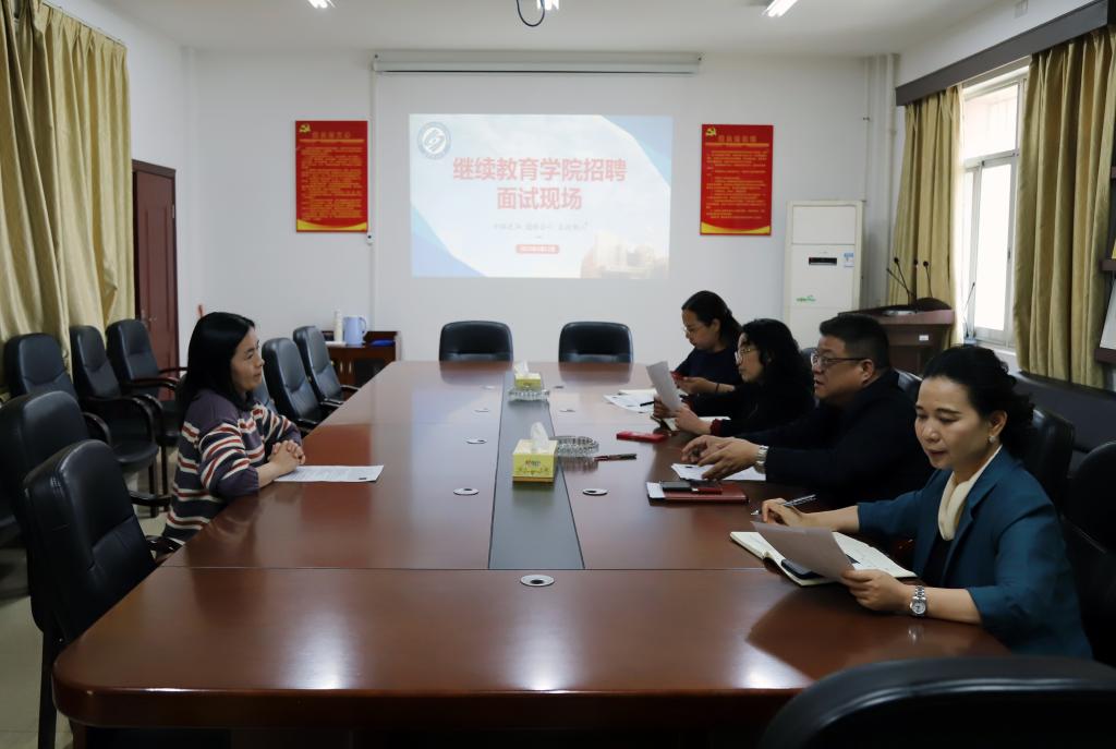 2023年3月13日下午,继教学院在15教三楼会议室举行了学院业务等部门工作人员招聘会。招聘会由继教学院副院长谢朝华主持,学院党政办公室、成教部、自考一部、自考二部、学工部、后勤部等有关部门负责人参加。