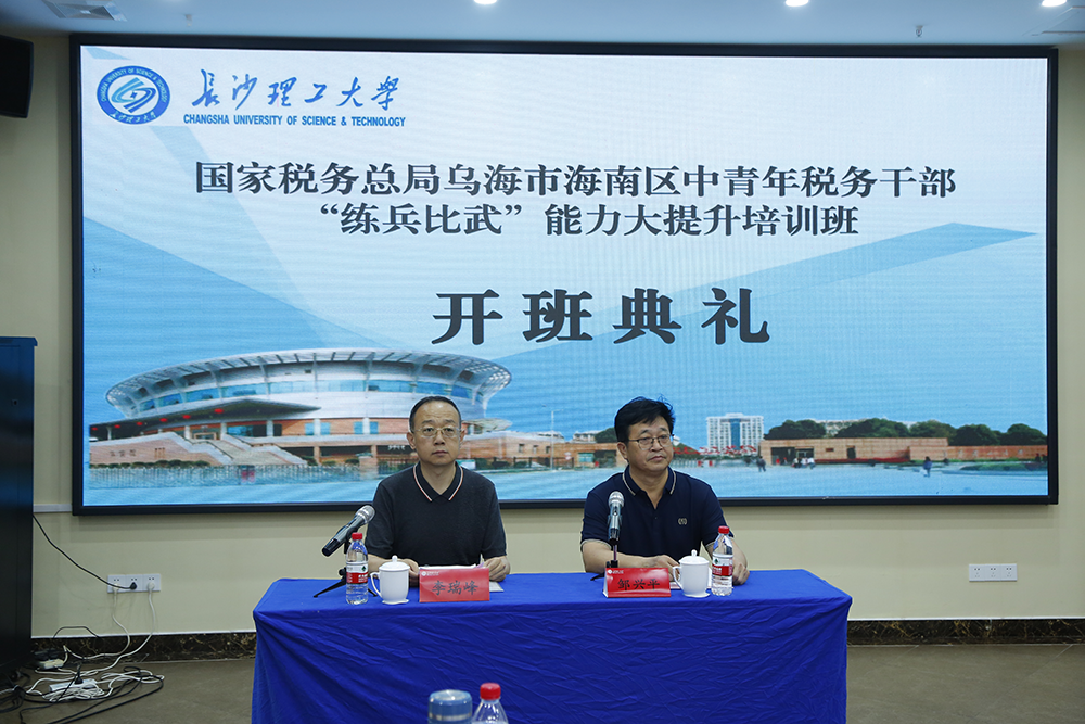 2023年4月21日,由国家税务总局乌海市海南区税务局组织,长沙理工大学承办的乌海市海南区中青年税务干部“练兵比武”能力大提升培训班在长沙理工大学云塘校区正式开班。海南区税务局拉僧庙镇税务分局局长李瑞峰、长沙理工大学继续教育学院院长邹兴平教授参加了本次开班仪式。