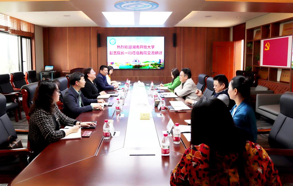 2024年4月8日下午,湖南开放大学培训学院院长彭艺一行5人到长沙理工大学继教学院进行调研交流。长沙理工大学继教学院院长邹兴平,副院长谢朝华、刘英姿,党委委员易国萍等,热情接待了湖南开放大学来宾,双方在长沙理工大学金盆岭校区15号教学楼四楼会议室进行了深入交流。