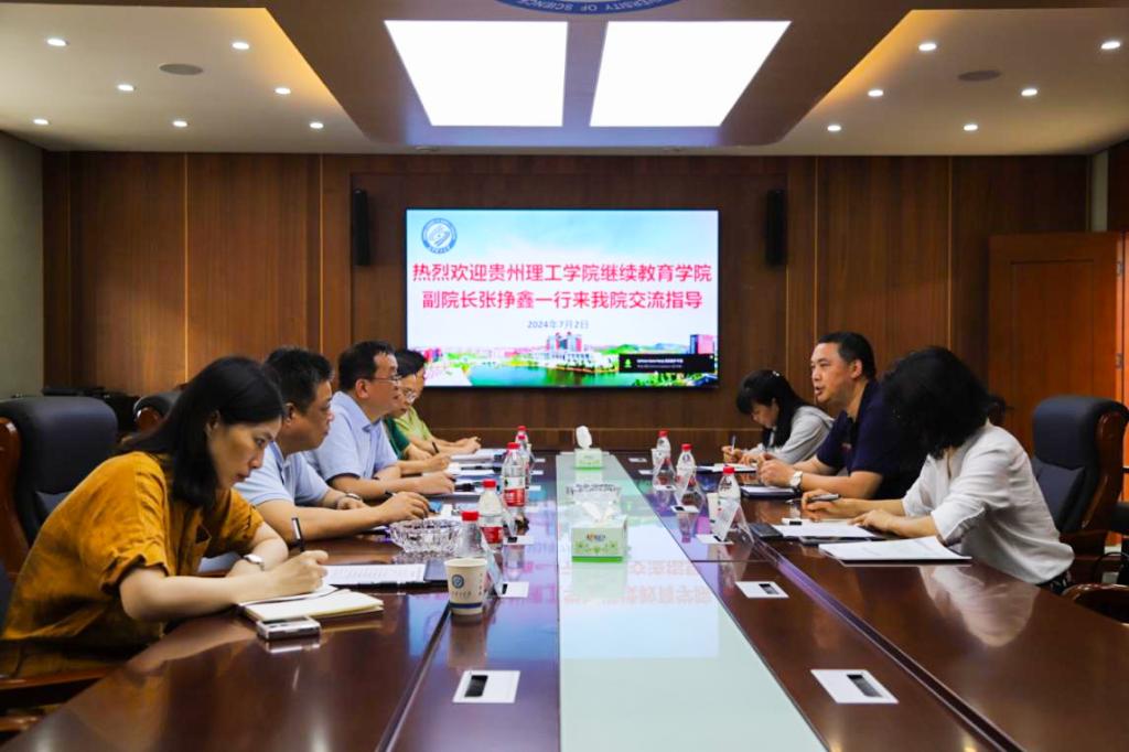 2024年7月2日下午,贵州理工学院继续教育学院副院长张挣鑫一行来我院调研交流。双方在15教四楼会议室进行了座谈交流。长沙理工大学继续教育学院党委书记刘思强、副院长谢朝华和成教、自考、培训等相关部门人员参加座谈。