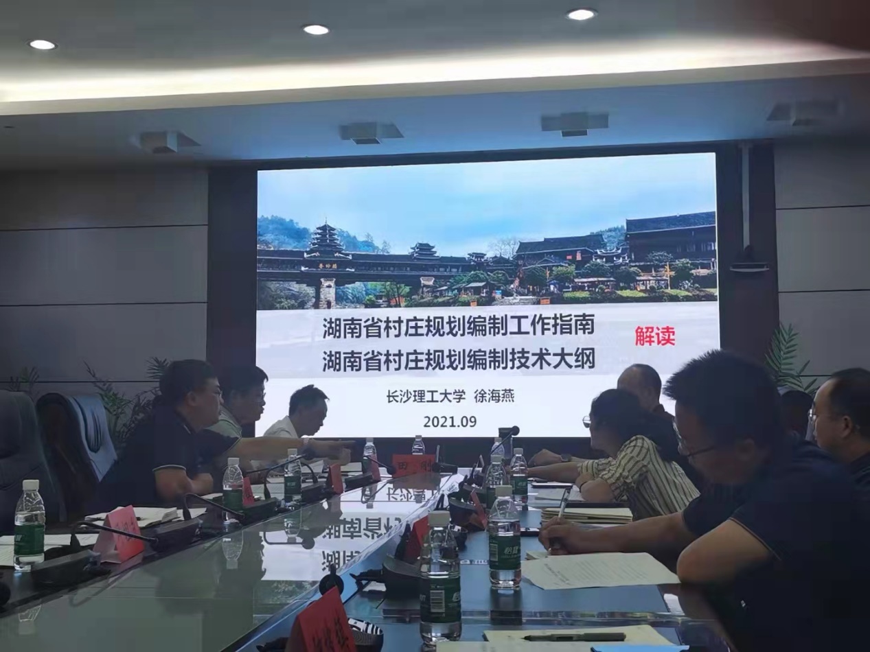 9月18号,准备多日的通道县“多规合一”村庄规划编制专题推进培训会顺利召开。这次会议是我校村庄规划志愿服务团深入了解县村庄规划工作内容及工作重点的会议。服务团团长徐海燕老师结合省厅村庄规划精神,详细解读了2021年湖南省颁布的《湖南省村庄规划编制指南》、《湖南省村庄规划编制技术大纲》。田刚县长做重要工作指示,明确要结合通道的红色绿色文化,做出有地域特色、有文化内涵的村庄规划。相关设计单位参加了本次培训会,我院周晨副院长、何川副院长及规划系多位教师出席。