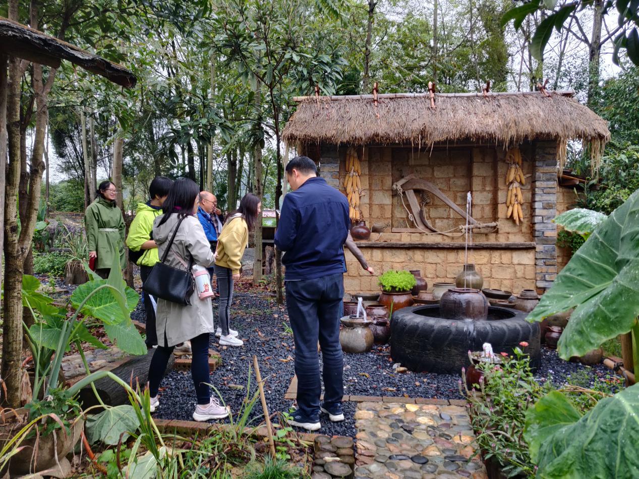 (参观调研前驻村队曾先禄、刘军等人带领大家参观坪山村)