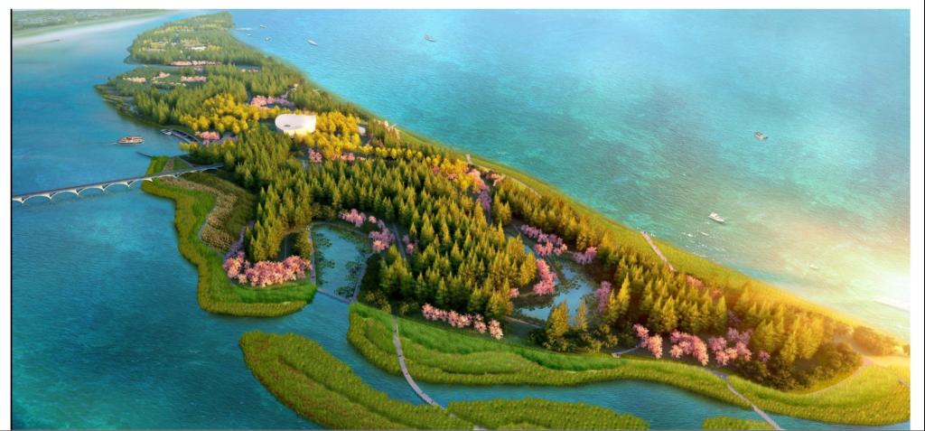 在保留巴西州野趣生境的前提下,打破传统的防洪大堤的建造观念,采用生态的环岛驳岸设计,运用透水铺装材料,布局拥有水质净化和调蓄作用的大面积湿地系统,设置完整的雨水收集系统,以大地为线索、以时间为线索、以感官体验为线索、在基础性设施的基础上穿插故事性花园主题、以生态设计为纲进行创行设计,使生态绿洲转变为水上公园。