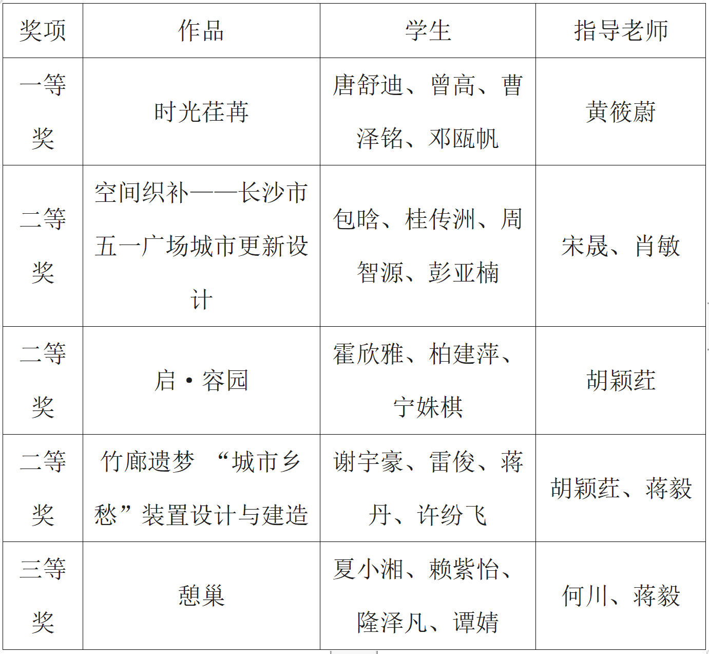 本次竞赛取得的成绩,充分展现了雷竞技官网建筑学专业人才培养质量在湖南省处于前列,展示了我院建筑学专业学生扎实的专业功底、活跃的创新思维、较强的实践能力。祝同学们来年更上一层楼!
