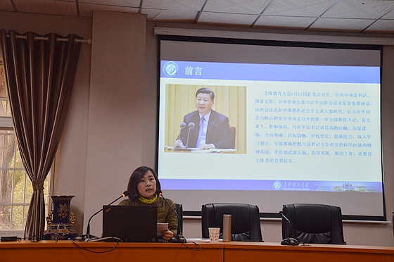 12月12日下午,校党委委员、宣传部部长方琼在金盆岭校区2教201宣讲全国教育大会精神。宣讲会由城南学院党委书记黄自力主持,建筑学院和城南学院全体教职工参加。