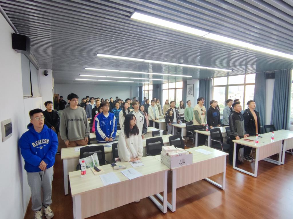 最后,党建辅导员郭恒老师向全体学员作动员讲话。对于本次党校学习,郭恒老师向全体学员提出以下要求。第一,要勇于担当时代重任,认真学习贯彻党的二十大精神,牢记习近平总书记对广大青年的嘱托,坚定不移听党话、跟党走,怀抱梦想又脚踏实地,敢想敢为又善作善成,立志做有理想、敢担当、能吃苦、肯奋斗的新时代好青年。第二,全体学员要树立正确的入党动机,真正做到思想上入党与行动上入党的有机统一,珍惜此次党校学习培训的机会,持续加强政治理论学习和党史学习,真正做到学有所思、学有所悟、学有所得。第三,希望全体学员在日后学习、工作和生活中时刻发挥好示范引领和模范带头的作用,“平常时候看得出来、关键时刻站的出来、危急关头豁得出来”,处处以党员的标准严格要求自己,立足更高起点,争做学习之模范、守纪之模范、工作之模范、生活之模范,不断提高自身综合素养,成为德智体美劳全面发展的榜样。