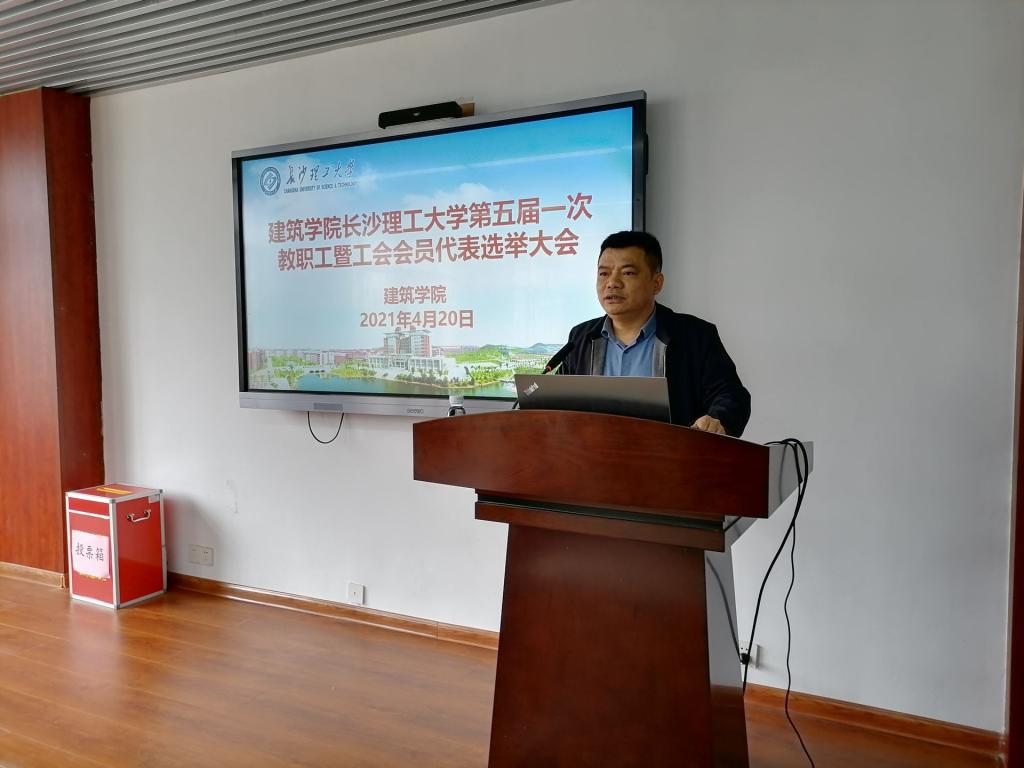 4月20日下午,建筑学院分工会在金盆岭校区16教建筑学院多功能报告厅召开长沙理工大学第五届教职工暨工会会员代表大会建筑学院分工会代表选举大会,选举产生长沙理工大学第五届教职工暨工会会员代表大会建筑学院分工会代表。会议由学院工会主席谢士成主持。学院53名教职工(工会会员)参加了大会。