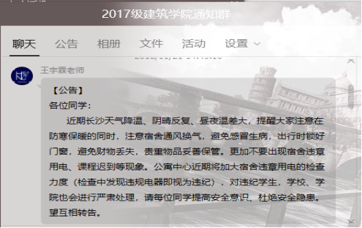 (辅导员在年纪通知群内进行消防安全知识宣传普及教育)