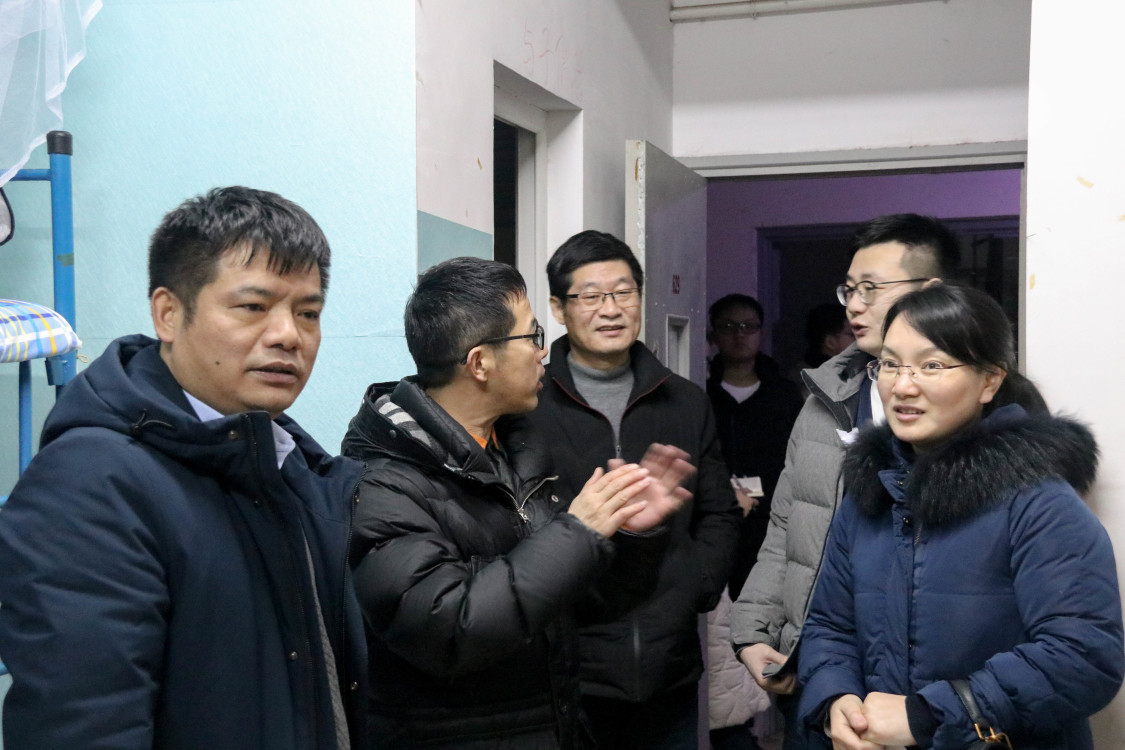 新学期开始,为了进一步了解同学们的宿舍生活情况,同时提高同学们的安全意识,2月24日晚,建筑学院党委书记丁力、副书记谢士成、副院长欧阳国辉以及辅导员老师周芳、王宇霖一起到西苑宿舍看望已返校的同学。