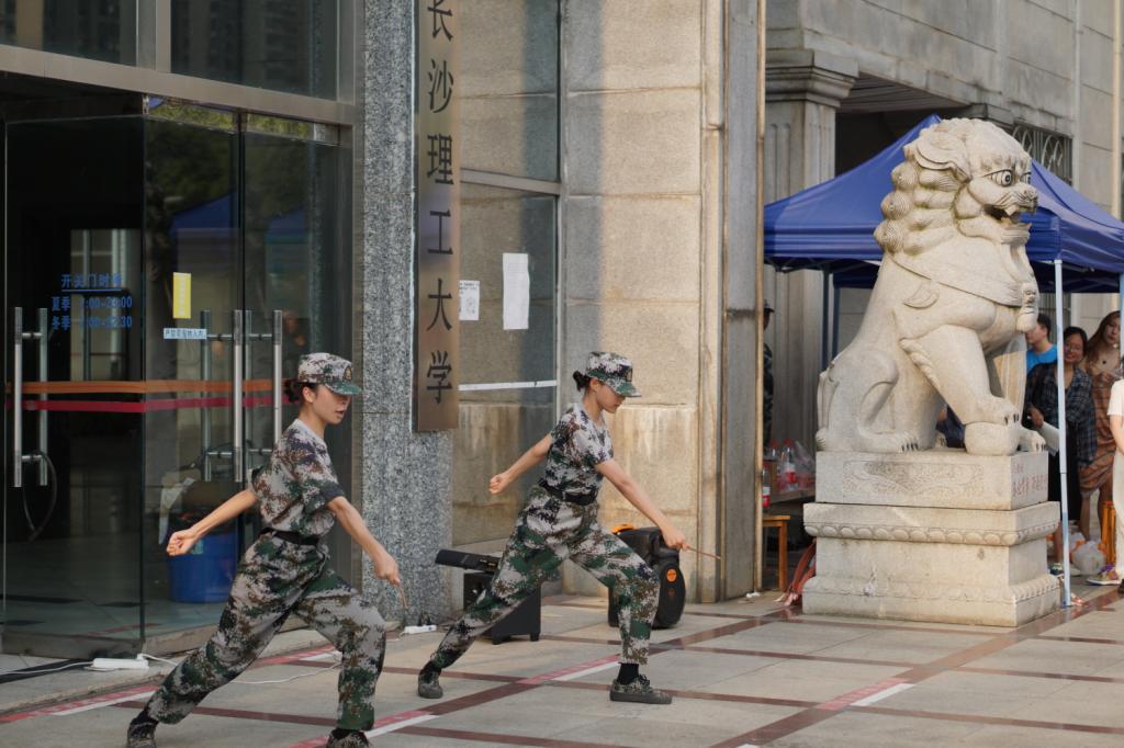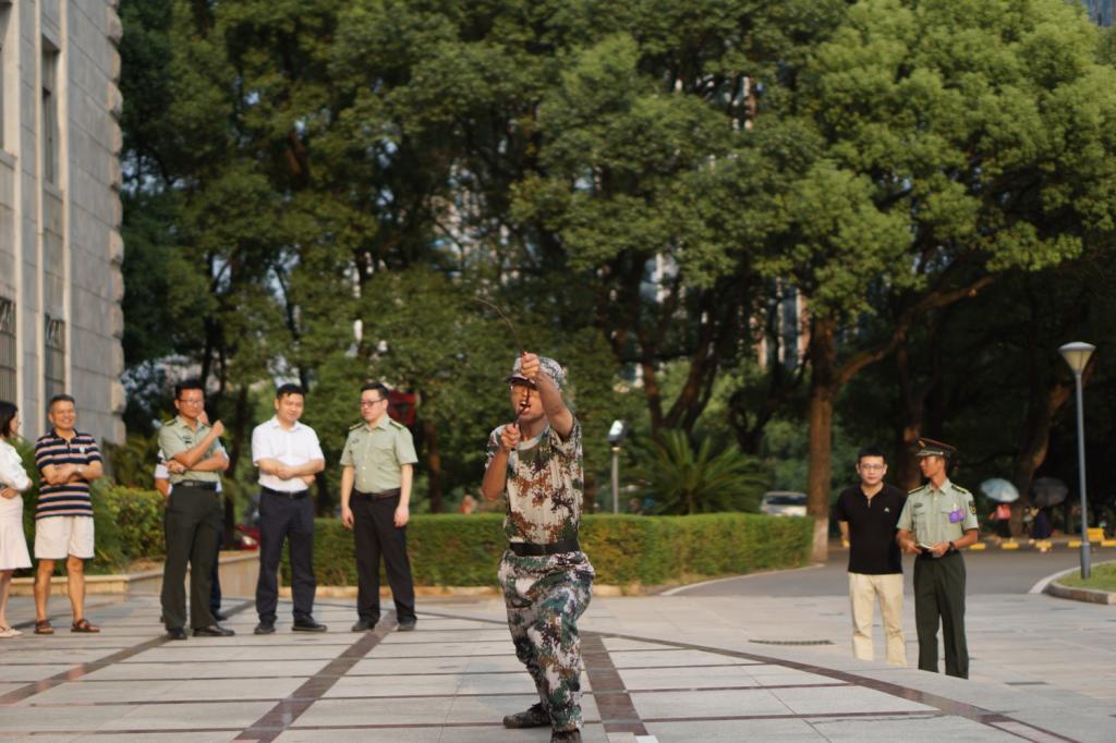 正式慰问开始前,参训学生展示了八天的训练成果,高亢的军歌、匕首操、军体拳和劈枪表演,引得大家频频拍手叫好。学院党委书记熊鹰对同学们展现的高昂斗志和精神面貌表示肯定,并代表学院党委对全体教官、工作人员以及辛苦训练的同学们表示感谢和诚挚问候。