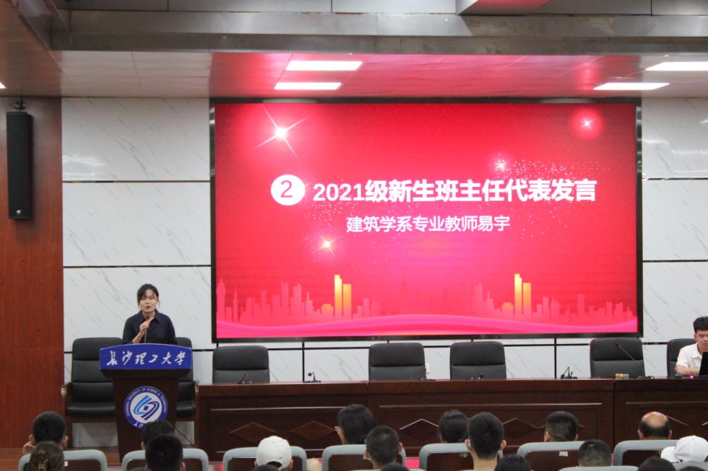 建筑学院党委书记熊鹰教授对2021级142名本科生和27名研究生的到来表示热烈欢迎,恭喜他们正式加入建院大家庭,求学之路道阻且长,希望每一位建院学子都能够“立大志、明大德、成大才、担大任”。班主任代表建筑学系易宇老师,以自身求学的经历为主线,为尚处于迷茫期的新同学们指明了方向。2020级老生代表黄珊同学对自己过去一年的学习、工作和生活做了分享,告诫学弟学妹们,要明确学习目标、制定生涯规划,用奋斗谱写人生华章。2021级新生王冠博和研一新生向子睿,作为新生代表做出了庄严承诺,要立鸿鹄志、做奋斗者,博学笃志、切问近思,永葆乐观、积极向上。副院长周晨教授对全体新生作了五个方面的祝贺并提出了五点希望,希望每个同学都能够找准自己的方向,不负韶华、不负时代。党委副书记谢士成对全体新生表示诚挚问候,希望同学们在未来的学习和生活中,不断的去“发现美、欣赏美、创造美”,早日成为一名德智体美劳全面发展的新时代大学生。