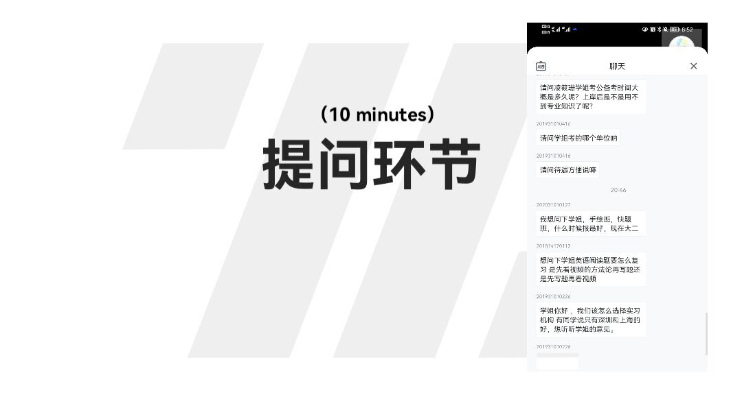 凌筱珊就考公方向为同学们详细解答了如何选择考公岗位、如何有效寻找公务员招聘信息、面试时如何脱而出等问题,时也为学们分享了个人备考过程,进一步深同学们对考公了解。她建议道,要考公务员的同学应尽早准备,选择更高的平台,拓宽消息渠道,关注第一消息