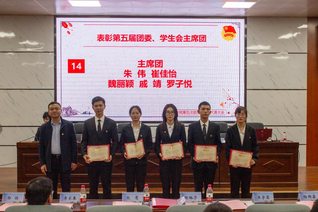 随后,大会为建筑学院五四评优获奖者和优秀学生干部颁授证书。颁授结束后,计票工作人员宣布投票结果,公布了建筑学院第六届团委、学生会选举结果。随着全体参会人员齐唱《中国共产主义青年团团歌》,建筑学院第五次团员、学生代表大会圆满闭幕。