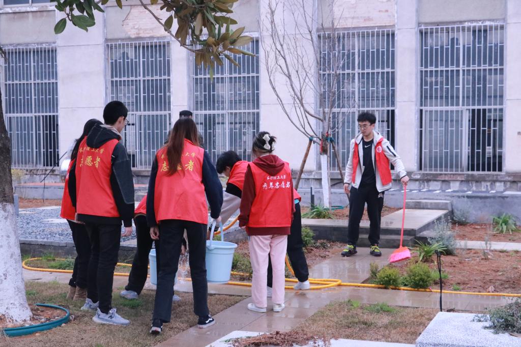 为全面贯彻党的二十大精神,学习贯彻习近平总书记对深入开展学雷锋活动作出的重要指示精神。3月3日中午,建筑学院开展“学雷锋精神 建美丽校园”志愿服务活动。学院党委书记熊鹰,党委副书记李家春,副院长周晨,全体辅导员及学生党员、学生干部参加本次活动,对16教前坪花园进行清扫。