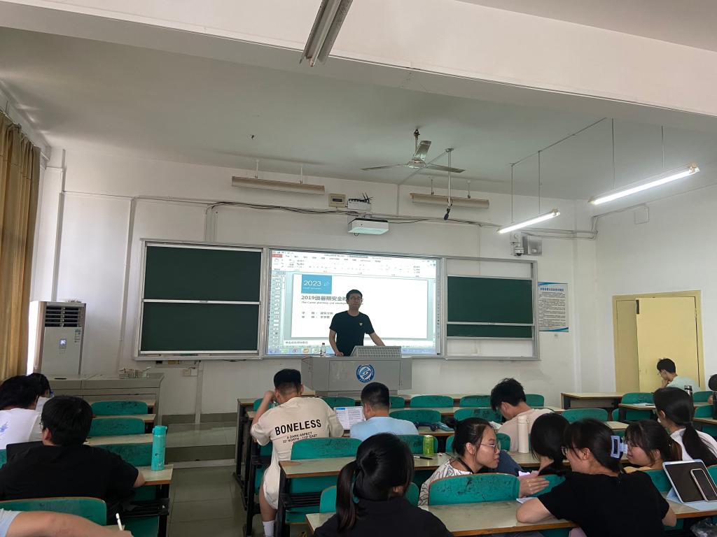 会上,王宇霖对暑期需注意的安全事项作了详细讲解,从留校学生宿舍安全、信息安全、夏季防洪防汛、防溺水中暑、饮食安全等方面进行了详细讲述,并向同学们强调“自己才是安全的第一责任人”,要求同学们切实树立安全意识,假期保持联络畅通,如有突发情况及时向学院报备,同时,王老师结合自身经验和往届实例对下一学期的生产实习相关问题进行了回答。