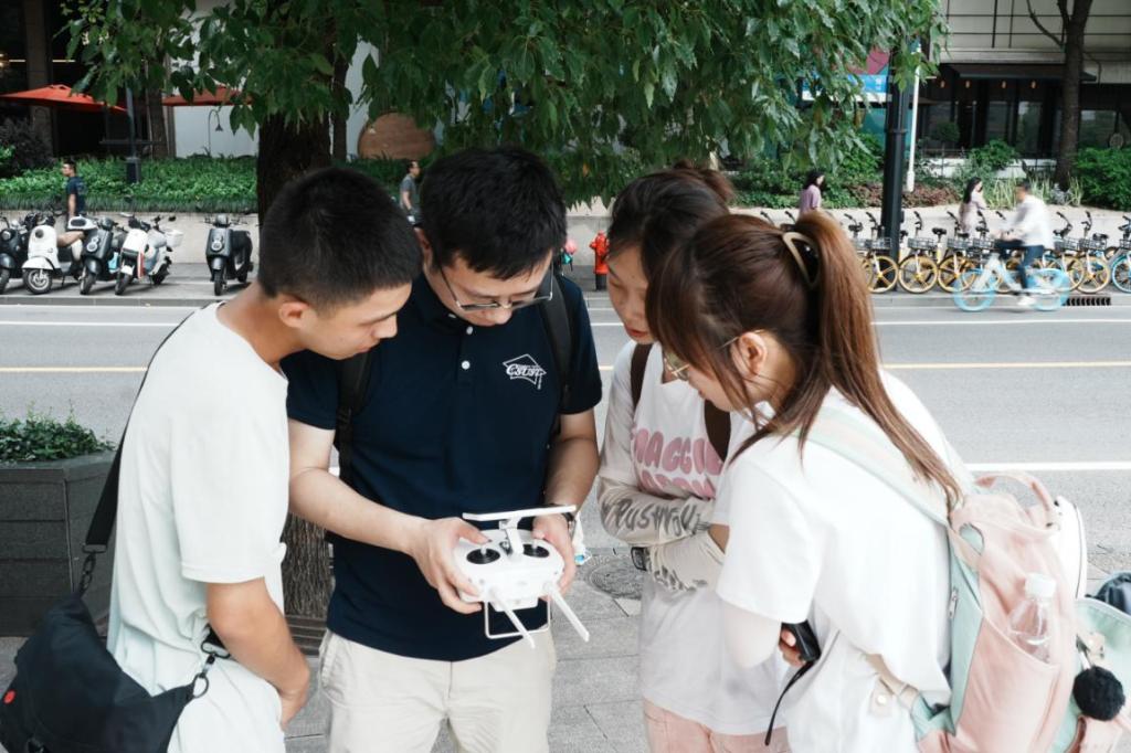 在中共一大会址具有纪念意义的石库门下,王宇霖老师向实践团成员们介绍了该地蕴含的文化历史,这里是中国共产党的“产床”,同时也是中国共产党人的精神家园。随后,王老师使用无人机让实践团成员们一睹开放的、街区型的、还原式的建筑肌理布局。测绘过程中,由于文物保护及管理方面的规定限制了实地测量的进展,实践团成员们在该次测绘中遇到了困难。但王老师与实践团成员们群策群力,最终通过分析已有数据并结合推断得出了其余必需的数据。