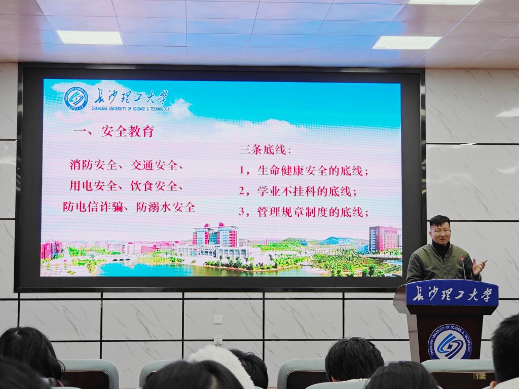 会上,郭恒老师通过以案释法,从“消防安全、交通安全、用电安全、饮食安全、防溺水安全、网络安全、防电诈安全、假期补课和兼职安全”九个方面,结合大量身边发生的安全事故教训进行了重点讲解。提醒同学们离校前务必要按照学校和学院要求,做好智慧学工线上和线下的登记报备,同时一定要给家长汇报清楚假期返程日期和去向,假期结束后务必要按时返校,有特殊情况要及时报备,无论任何时候都要把个人生命和财产安全放在第一位,向同学们讲述了一些身边的安全隐患,帮助同学们认识到在日常生活中防患于未然的重要性,生命的脆弱与可贵,为同学们敲响了安全的警钟,希望每位同学都要做好个人健康安全的第一责任人。