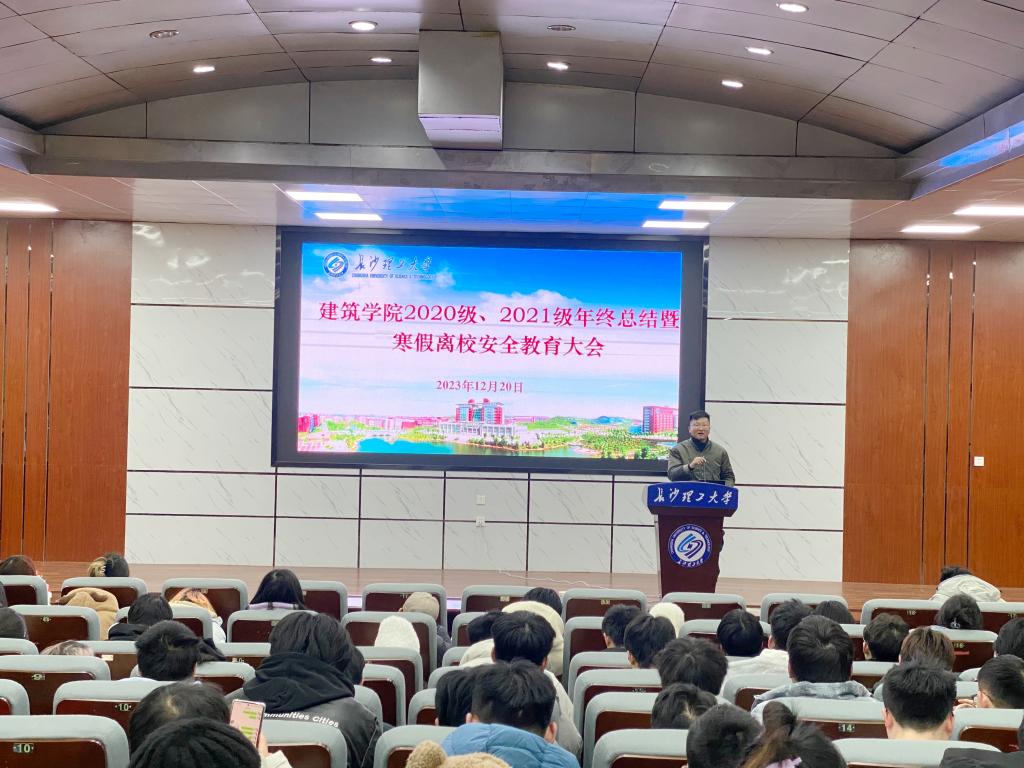 寒假将至,为做好年终总结,帮助学生全面了解学业现状,切实增强学生的风险防范意识和避险能力,提升同学们在寒假期间的安全意识,保障学生人身和财产安全,12月20日晚上19:00,建筑学院在4教报告厅召开了2023年年终总结暨寒假离校安全教育大会,年级辅导员郭恒及2020级、2021级全体学生参会。