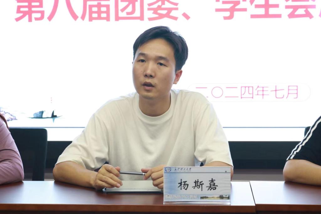 会议议程第一项,团委书记杨斯嘉首先从部门职能、分工等几个方面对第八届团委、学生会各成员提出了期望与要求,希望大家能加强部门建设,提高相关专业能力,明确部门内部各成员的工作与职责,共同努力促进建筑学院团学发展。会议议程第二项,第八届团委、学生会主席团成员霍申峰、杨城鑫、李奕璇、刘勋、肖汉权依次上台发表任职讲话,对同学们的信任表示感谢并对未来各部门的发展提出了展望。会议议程第三项,由团委副书记霍申峰宣布暑期培训相关安排,包括了2024级新生军训后勤相关工作,院学生会的招新工作、各部门新媒体人的培训与对接等。会议议程第四项,党委副书记李家春发表了讲话,明确了第八届团委、学生会工作的主要基调,强调学生干部要充分发挥好学院与学生间的桥梁作用以及学风建设上的表率作用,为学生成长成才,学院发展贡献自己的一份力量。