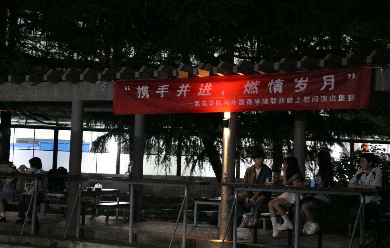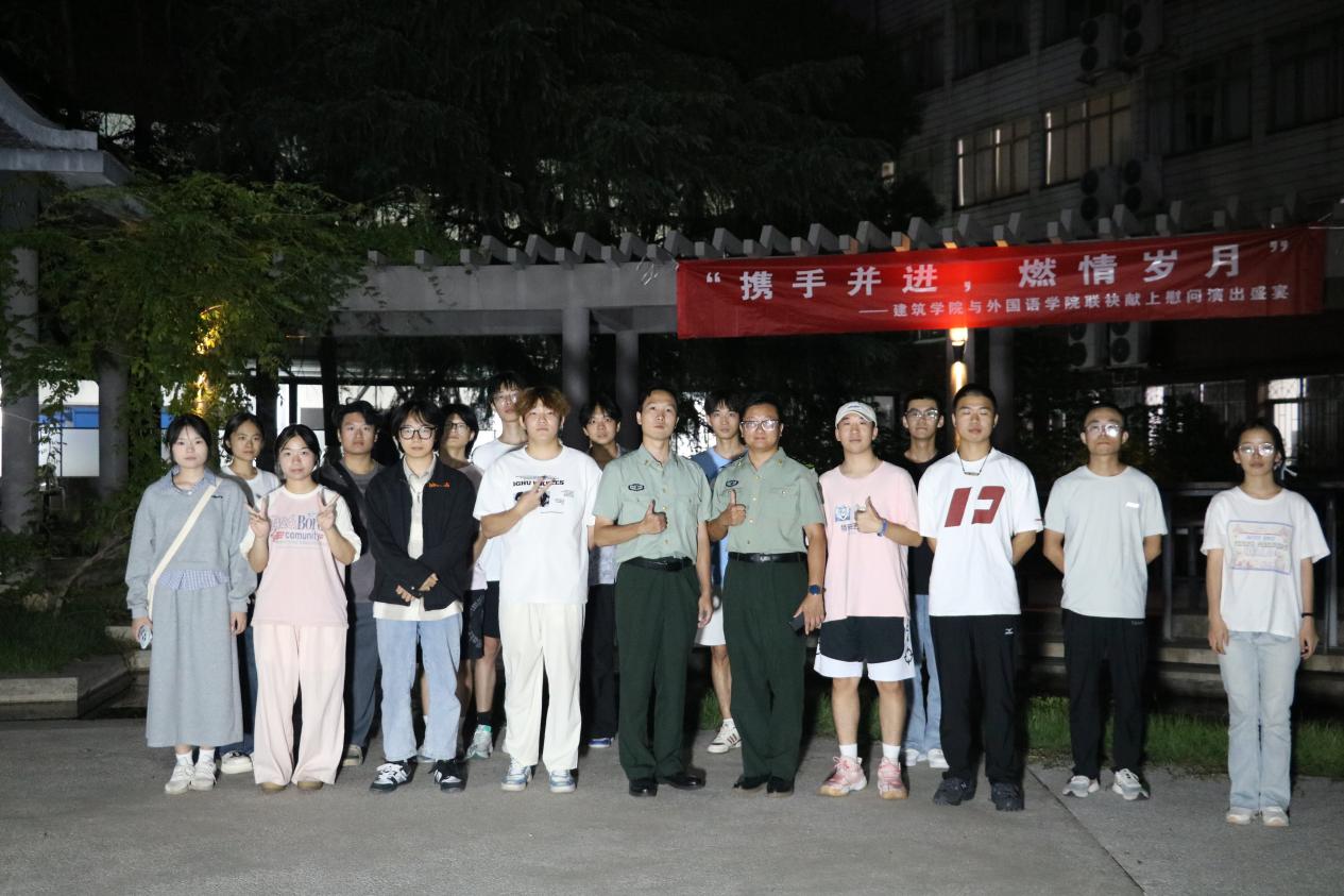 初秋之夜的微风轻拂,建筑学院与外国语学院携手为2024级新生们带来了一场温馨而热烈的军训慰问演出晚会。9月24日晚,16号教学楼小花园亮起点点灯光,歌声与欢笑声交织成一片欢乐的海洋,为他们送上最真挚的关怀与祝福。建筑学院团委老师及2024新生辅导员杨斯嘉,2024级新生辅导员陶蓝和外国语学院团委老师郭恒共同出席,与新生们共享这一美好时光。