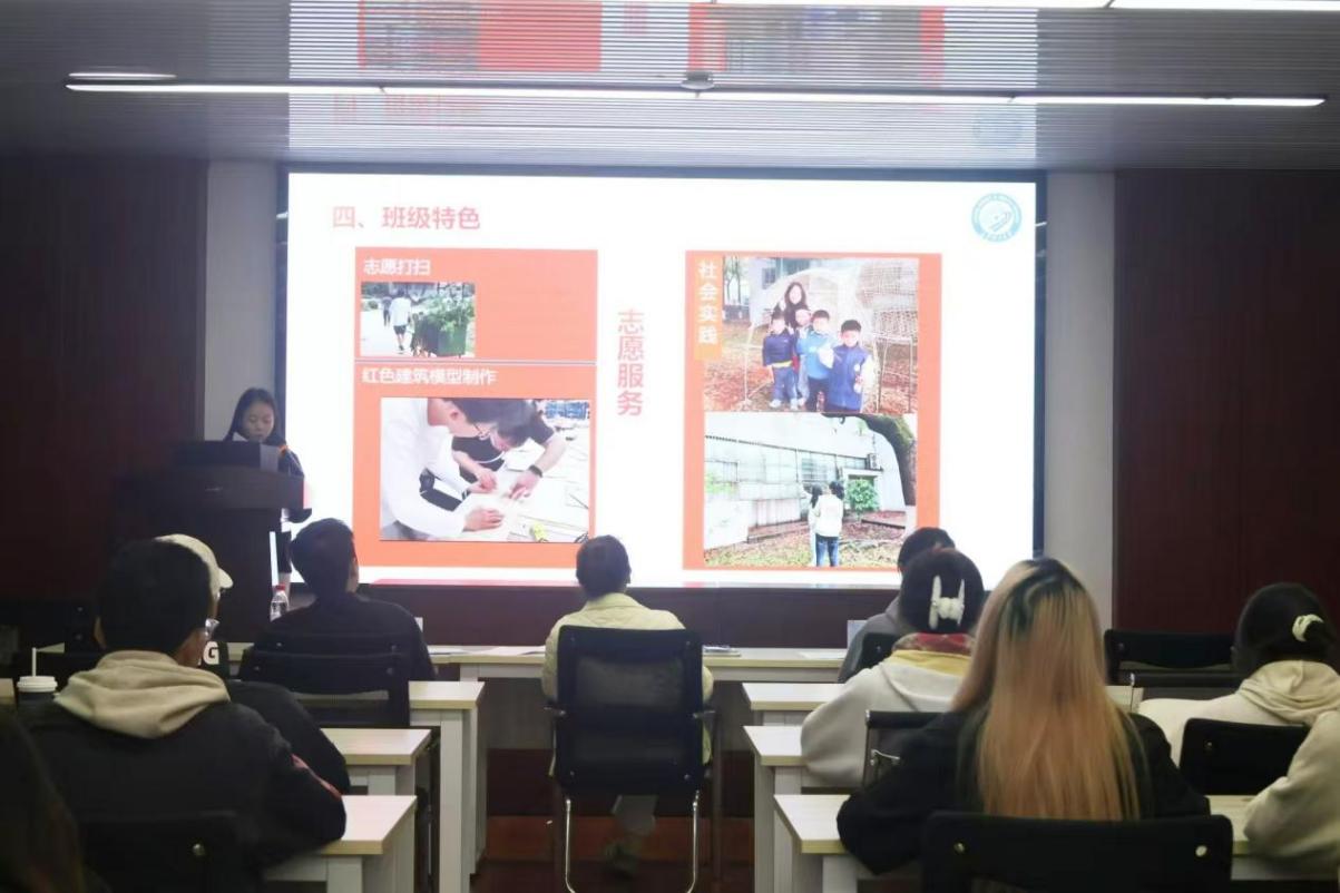 本次评选活动主要由班级答辩和评委提问两个主要环节构成。在班级答辩环节,各班代表纷纷通过 PPT、视频等多样化形式,向在座的嘉宾、老师和同学们全方位展示本班风采。展示完毕后,评委老师们针对各班代表的发言进行了进一步的提问,深入挖掘各班级在日常学习、生活中那些默默无名却熠熠生辉的优秀事迹,进一步彰显了各班独特的魅力。