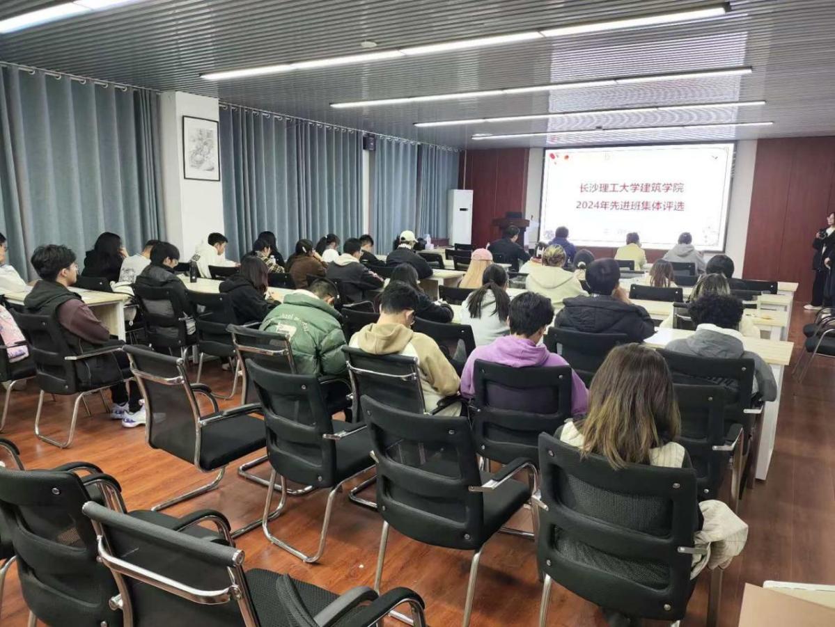 11 月 18 日晚,长沙理工大学建筑学院在 16 号教学楼 314 教室成功举办了面向各年级学生的先进班集体评选活动。活动现场气氛热烈,学院代理党委副书记肖义慧、学工办老师陶蓝、王栩婕、杨斯嘉受邀担任评委,为各班代表进行公平、公正的评选。