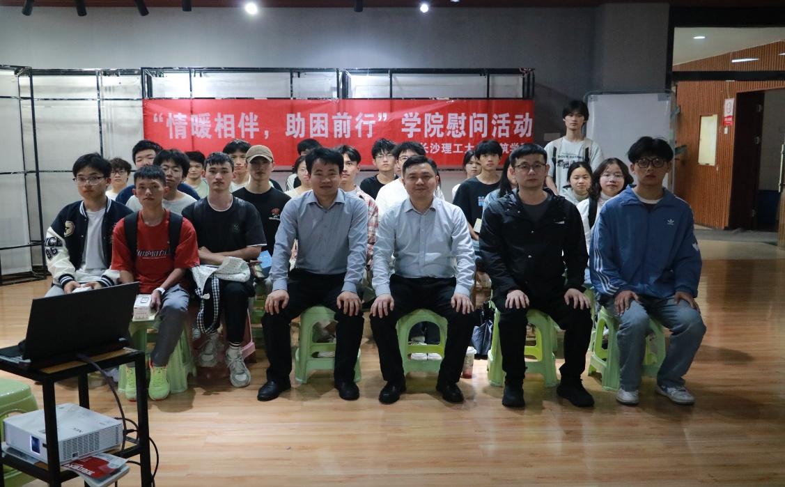 2025年4月28日下午,长沙理工大学建筑学院资助慰问活动在16教一楼展厅成功举办,建筑学院党委书记熊鹰、党委副书记肖义慧、辅导员王宇霖对家困生进行了慰问。