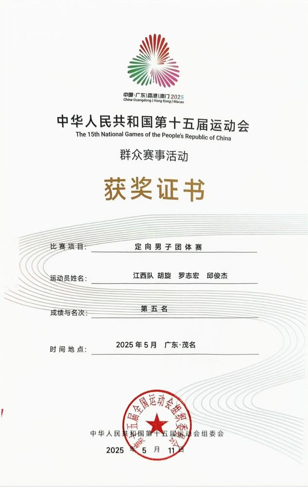 在刚刚落幕的中华人民共和国第十五届运动会群众比赛定向项目比赛中,长沙理工大学建筑学院2024级研究生胡旋代表所在省队出战,在预赛中与25支队伍展开激烈角逐,最终成功晋级决赛;决赛中,赛况竞争异常激烈,但胡旋在前期训练条件不足的情况下,与队友协力拼搏,贯彻稳扎稳打的战术,最终斩获群众比赛定向项目团体赛决赛第五名的优异成绩。本次赛事以“山海为赛场,好心迎宾客”为主题,设定向运动男女团体、接力赛及无线电测向团体赛等六大项目,共产生6枚群众赛事金牌。5月8日至11日,来自全国23个省、自治区、直辖市及香港、澳门特别行政区的38支代表队438名运动员,在茂名4个县区的8片特色场地展开较量。