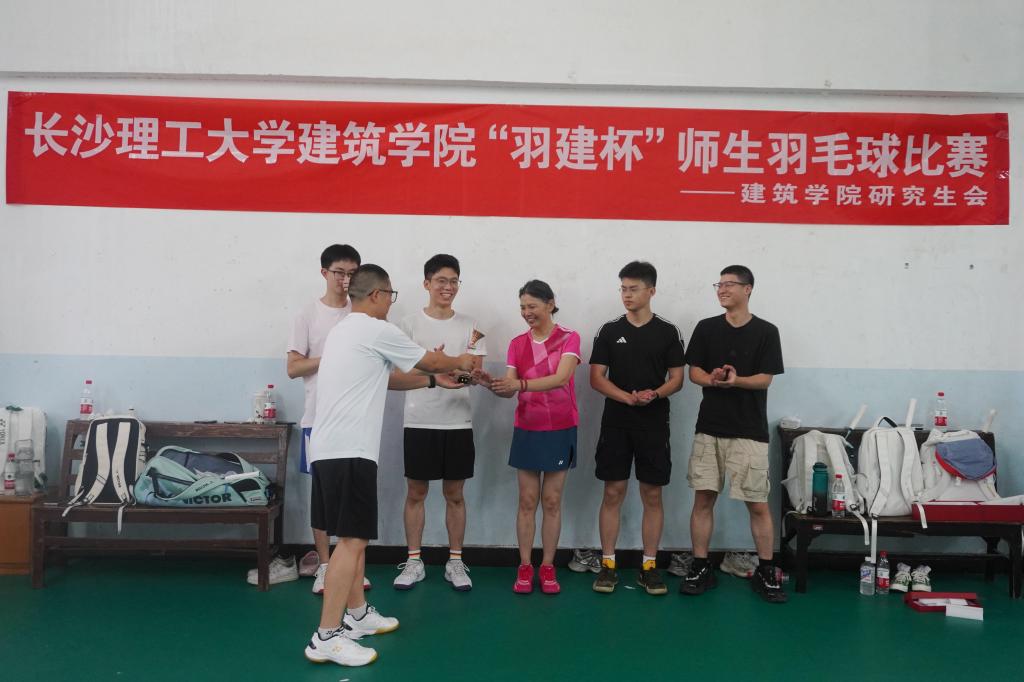 激动人心的颁奖环节随后举行。学院领导为冠亚军队伍以及所有参赛队伍颁发了象征荣誉的奖杯和奖品,表彰他们在赛场上的优异表现和为比赛成功举办所付出的努力。至此,历时近一周的第六届“师生羽建杯”羽毛球比赛圆满落下帷幕。