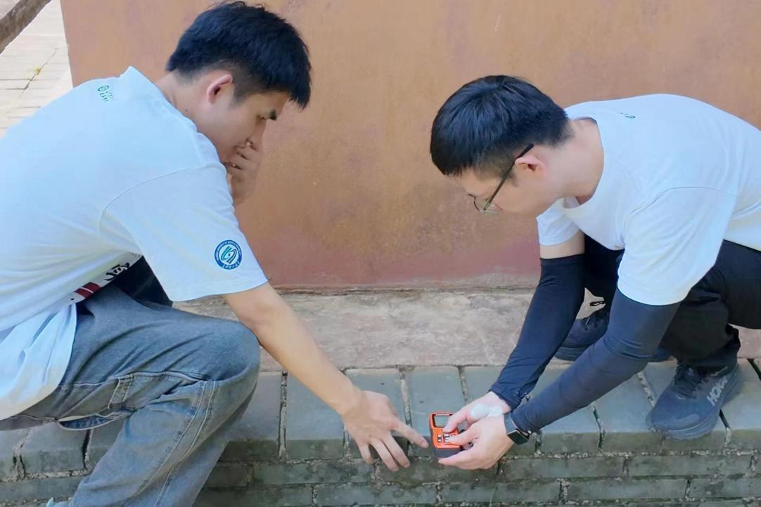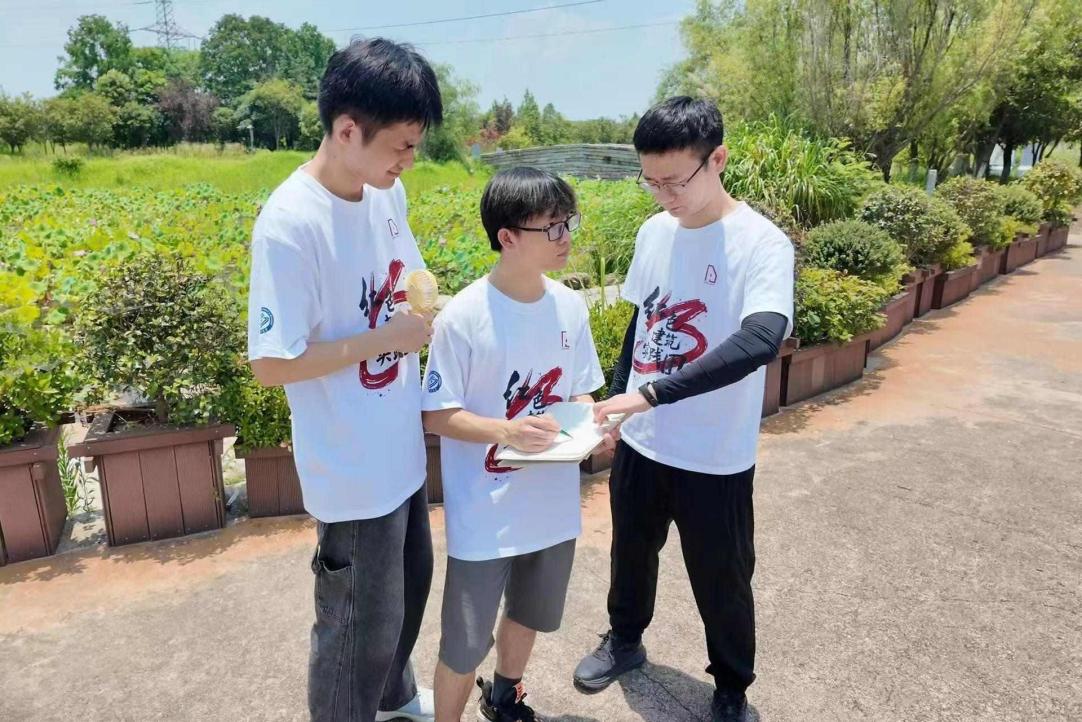 7月6日上午,实践团成员到田汉故居周边测绘调研,与当地老人交流。据悉,田汉故居于抗战时是重要文化宣传阵地。田汉本人创作了大量抗战戏剧与歌词,其代表作《义勇军进行曲》成激励全民抗战的精神号角。后续调研中,实践团发挥专业优势,用先进设备结合传统工具,精准测绘田汉故居建筑结构与空间布局,运用 BIM 技术构建三维信息模型、建立数字化档案。此外,实践团成员以三杰抗战为主题,围绕故居建筑元素创作系列红色文创作品,通过多维度的创新形式,推动红色文化的传承与传播。
