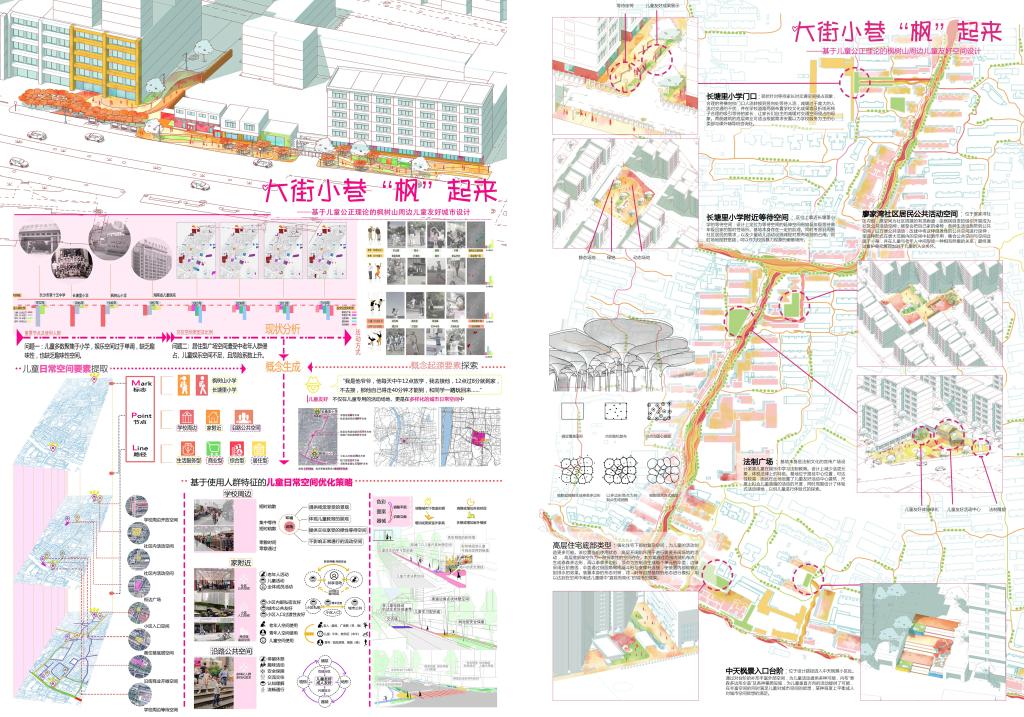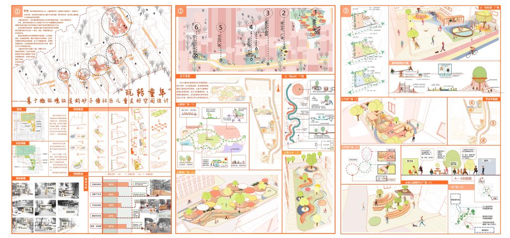 在刚刚结束的长沙市儿童友好型城市公共空间设计与改造征集大赛中,我院学子的4件作品《藏进世界的角落》、《玩转童年》、《大街小巷“枫”起来》、《他不知道名字的那些鸟儿》从包括长沙市规划院、省院、建筑院,湖大院,湖南大学、中南大学、中南林业科技大学、武汉理工大学等设计院和高校团队的65份作品中脱颖而出,获得二等奖2项(图2、3),三等奖1项(图4),优胜奖1项(图5)的好成绩。