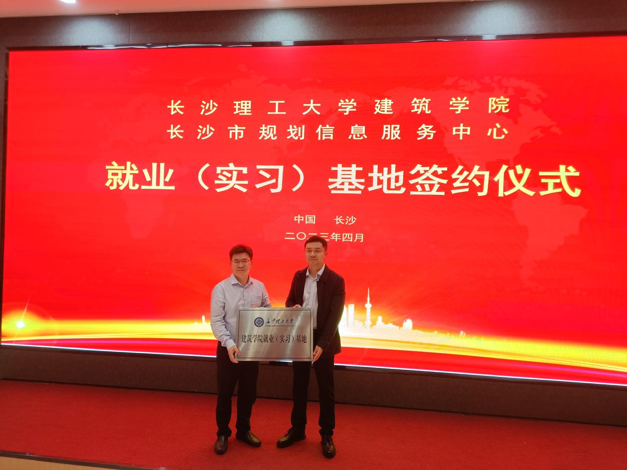 座谈会后,长沙理工大学建筑学院与长沙市规划信息服务中心正式签订了《就业实习基地合作协议》,并举行了基地授牌仪式,尹长林和熊鹰共同为基地揭牌,标志着双方在产学研合作上取得了实质性的成果。