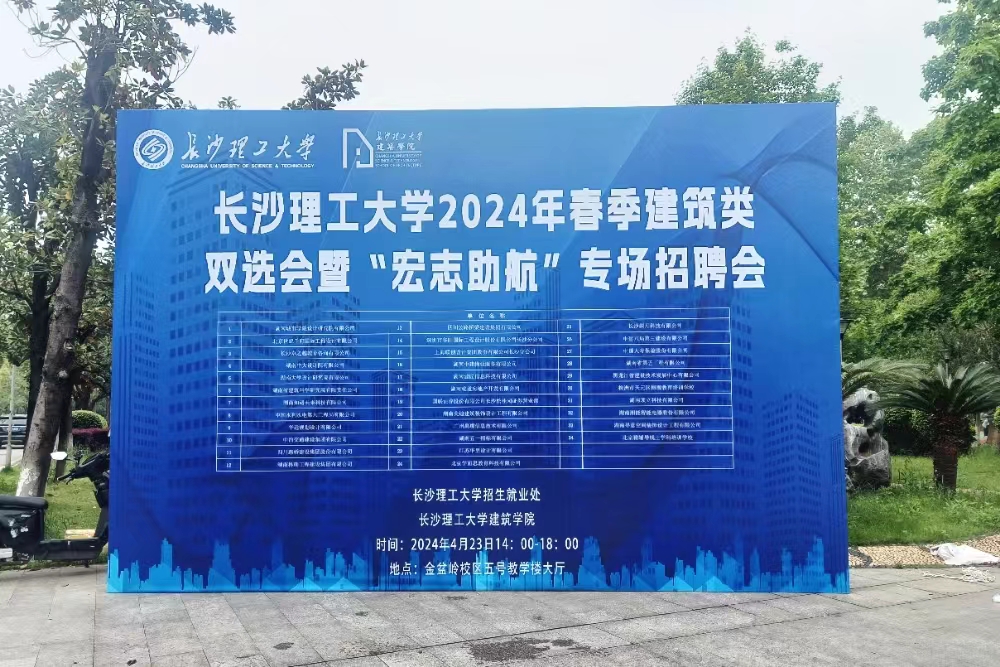 为抢抓春招关键期,全力攻坚促就业,4月23日,建筑学院联合招生就业处在金盆岭校区5号教学楼举行长沙理工大学2024年春季建筑类双选会暨“宏志助航”专场招聘会。本次招聘会共邀请34企业参加,提供建筑类、土木类、交通类、财务类、电气类以及专业不限的招聘岗位达1000余个,现场参加学生超过300名。