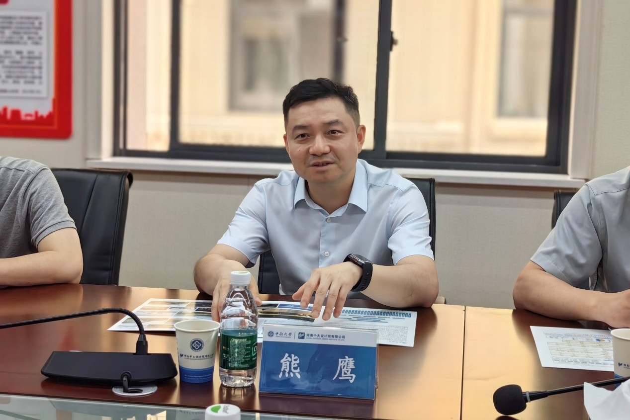 交流伊始,胡迎新对长沙理工大学建筑学院领导一行的到来表示热烈欢迎,并详细介绍了湖南中大设计院发展历程、业务板块、用人需求及目前行业的状况。他表示,设计院在多年发展中积累了丰富的项目经验,注重技术创新与人才培养,期待与高校加强合作,实现资源共享、人才共育。座谈会议上,党委书记熊鹰先后介绍了建筑学院的办学情况与历史、师生组成以及近年来的学院发展成果并就建筑学院的专业设置与人才培养情况向大家说明,他表示学院致力于培养具有创新精神和实践能力的高素质人才,积极组织师生参与企业的科研项目和实践活动,同时也高度重视高校与企业的合作,希望通过紧密合作,进一步提高人才培养质量,为行业发展注入新的活力。随后党委副书记肖义慧,从25届、26届毕业生的情况向大家介绍,并积极向企业推荐学生,希望未来能与企业开展更加紧密、更多层次、更深领域的合作,为学生提供更多实践、就业机会,提升学生的专业素养和就业竞争力。