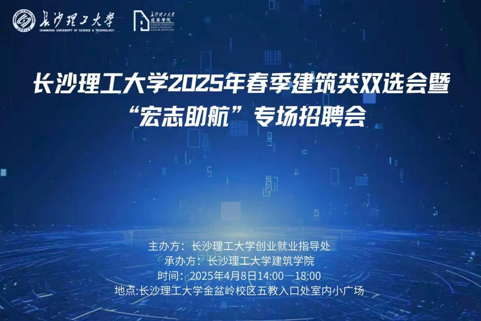 为促进毕业生更高质量就业,搭建毕业生与用人单位之间的沟通桥梁,长沙理工大学将于4月8日14时至18时在金盆岭校区5教举办春季建筑类双选会暨“宏志助航”专场招聘会。此次招聘会将吸引众多知名企业参会,为建筑类专业毕业生提供丰富的就业机会。