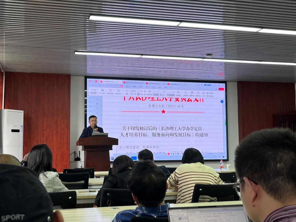 熊鹰领学了学校《2023年第16次党委会会议纪要》和《长沙理工大学办学定位、人才培养目标、服务面向和发展目标》、《长沙理工大学本科教育教学审核评估应知应会》等。他指出,本科教育教学审核评估是事关学校和学院发展的头等大事,全体教职工要统一思想认识,提高政治站位,深刻认识本科教育教学审核评估的重要意义;要深刻领会学校关于办学定位、人才培养目标、服务面向和发展目标的新要求,深入学习本科教育教学审核评估“应知应会”相关内容;要抓实抓细本科教育教学审核评估的各项工作,做到人人重视评估,人人关心评估,人人参与评估。他强调,建筑全院全体师生要树立正能量,建立评估常态化意识,以良好的精神状态、饱满的工作热情、高度的责任感落实以评促改的任务要求,为迎接学校的审核评估做好充足的准备。