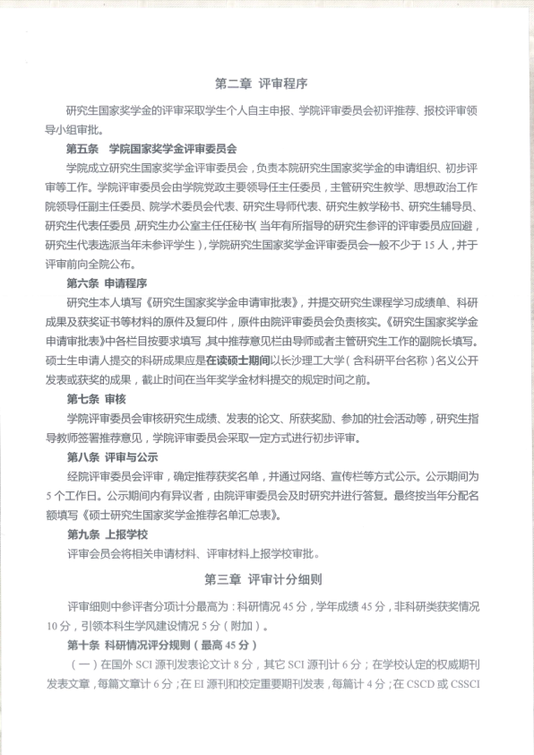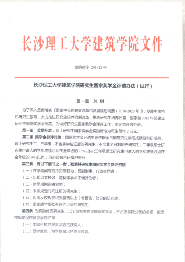 长沙理工大学建筑学院研究生国家奖学金评选办法(试行)