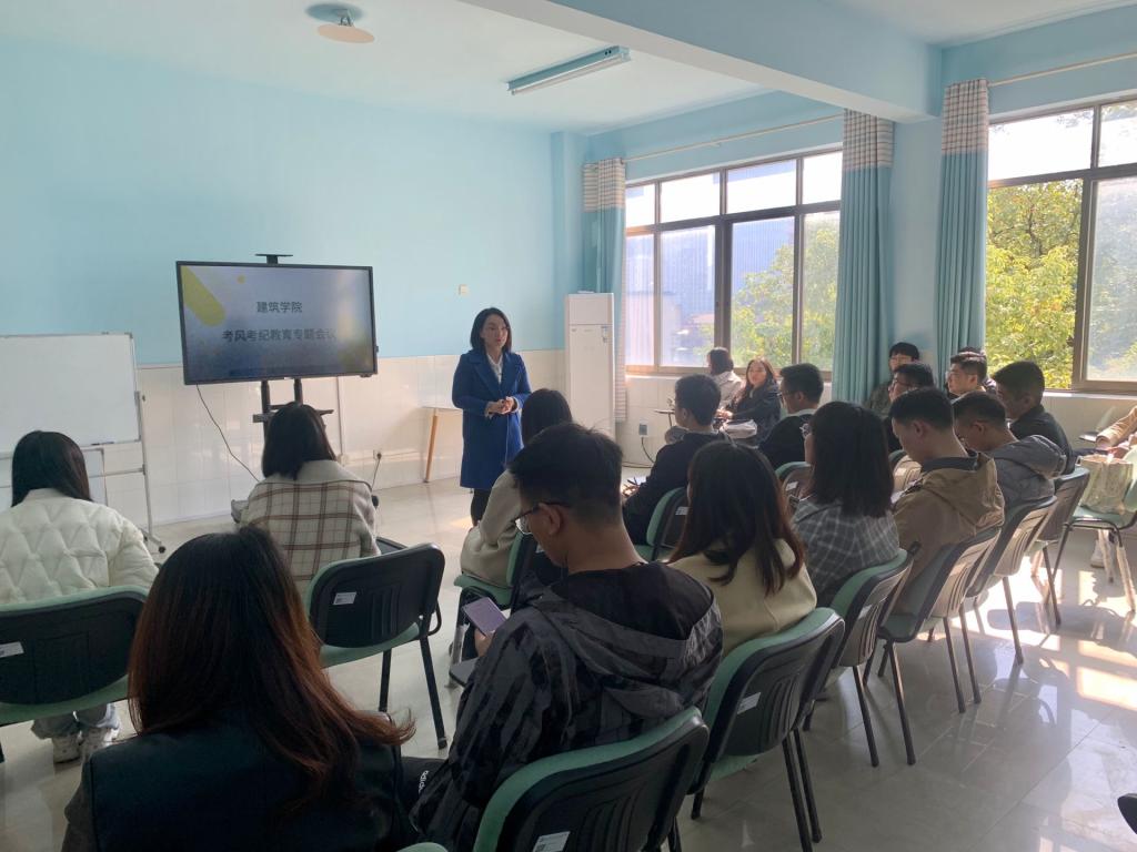 10月15日,建筑学院于16教召开了严肃考风考纪专题学习班会,学工办周芳主持会议,建筑学院全体研究生参会。