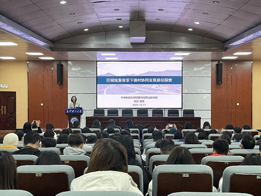 12月17日下午,中国城市规划学会理事、中国城市规划学会小城镇规划学术委员会副主任委员、全国城市规划硕士专业学位研究生教育指导委员会委员、中国学位与研究生教育学会城市规划专业学位工作委员会委员、住建部城乡规划专业评估委员会委员、湖北省城市规划协会副会长、华中科技大学耿虹教授应邀在雷竞技官网金盆岭校区四教一楼报告厅主讲了《区域统筹背景下镇村协同发展路径探索》的专题讲座。本次讲座由建筑学院党委书记熊鹰主持。副院长刘丹及百余名师生现场聆听。