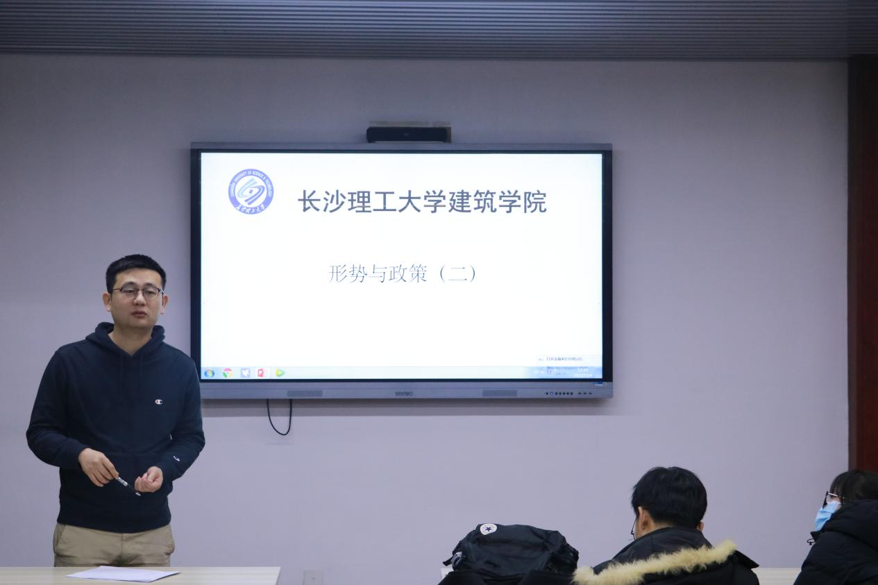 12月6日下午17点,在长沙理工大学建筑学院16教314开展了一堂形势与政策课。此次课程由学工办王宇霖老师主讲,我院2022级全体研究生参加学习。