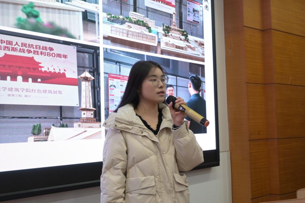 活动伊始,实践团指导老师王宇霖向在场师生介绍了长沙理工大学红色建筑实践团。他讲到,实践团通过制作等比例红色历史建筑模型,生动诠释红色历史故事,传承红色基因,弘扬湖湘文化。随后,2025级研究生王慈衣、黄晴分别围绕石鼓书院、恭城书院的实践过程,从红色历史背景、建筑空间布局、书院精神文脉等方面展开讲解,并现场展示了精心制作的建筑模型。