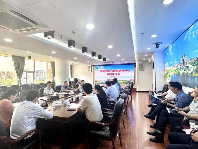 5月17日下午,湖南省科技厅高新处处长王先民一行来雷竞技官网调研科技创新工作。校党委委员、副校长刘朝晖出席会议,科技处负责人及相关学院负责人及教师代表参加座谈会,会议由科技处处长王进主持。