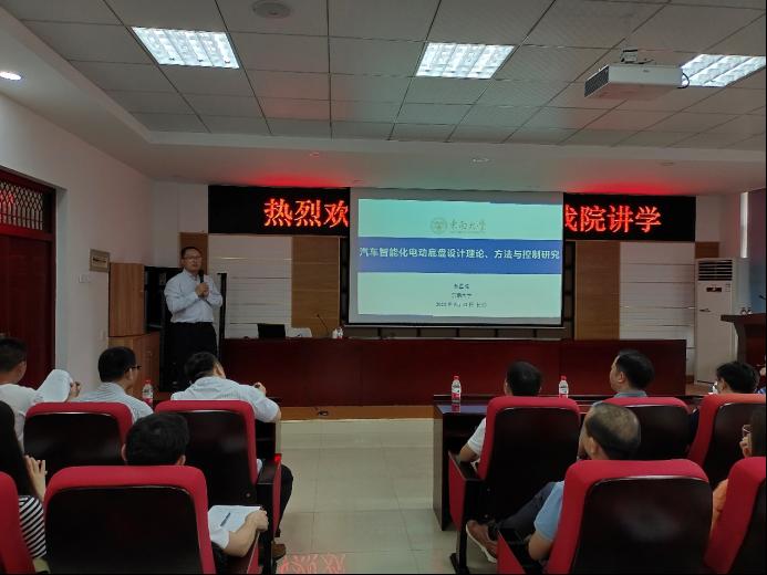 2021年5月12日,东南大学机械工程学院首席教授殷国栋应雷竞技官网汽机学院邀请,在工科一号楼B417多功能报告厅作了题为“汽车智能化电动底盘设计理论、方法与控制研究”的学术报告。报告由汽机学院副院长胡林主持,汽机学院院长杜荣华,长沙理工大学科研部副部长胡宏伟,汽机学院副院长毛聪、何志勇和部分教师及学院部分研究生参加了本次报告会。